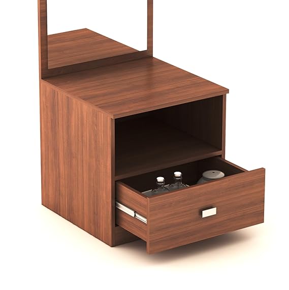 DesignFit Engineered Wood Dressing Table with Mirror and Storage Wooden Make-Up Vanity Table for Bedroom Living Room Home (Walnut Finish)
